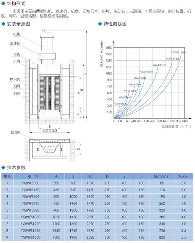 WFS型无毂式粉碎型格栅除污机